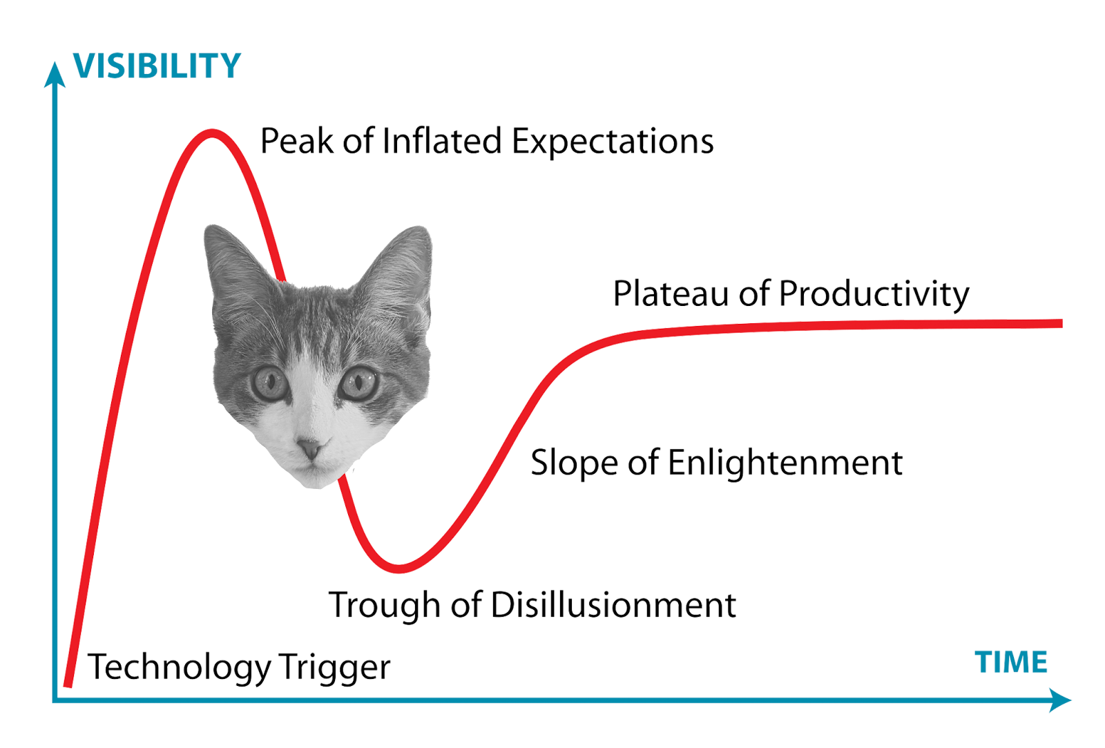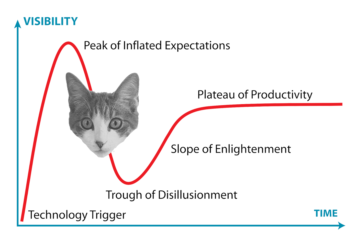 It seems like today we’re simultaneously straddling the peak and trough of the Hype Cycle. A sort of Schrodinger’s cat of hype and disillusionment.